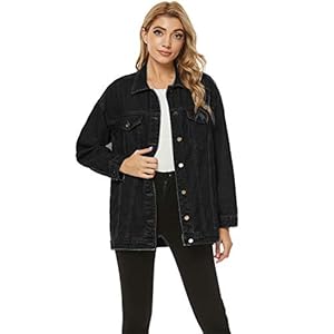 PUWEI Women’s Oversized Denim Jacket Distressed Lapel Button Up Long Sleeve Jean Jacket with Pockets