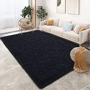 Tepook Super Soft Fluffy Rug for Bedroom, Modern Shaggy Rug Fuzzy Kids Rug for Living Room, Plush Indoor Nursery Home Decor Rug with Non-Slip Bottom, Black, 4 X 6 Feet