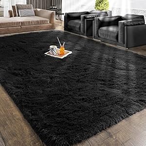 Black Soft Area Rug for Bedroom,4×6,Fluffy Rugs,Shag Carpet for Living Room,Fuzzy Rug for Girls Boys Room,Furry Rug for…