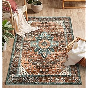 MUJOO 5’x7′ Area Rugs Pink Machine Washable Rugs Living Room Rugs Boho Area Rug for Bedroom Laundry Room Kitchen Non…