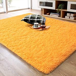 Ompaa Fluffy Area Rugs, Super Soft Shaggy Rug Fuzzy Long Fur Carpets for Bedroom Living Room Decor, 4 x 6 Feet Orange