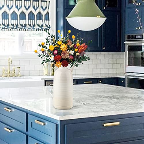 12.5″ White Ceramic Vase for Home Decor Large Decorative Vase Boho Pottery Bud Vase for Flowers Rustic Farmhouse Tall Single Flower Vase for Centerpieces Pampas Grass