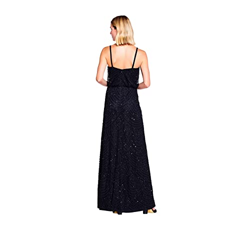 A scalloped pattern of sparkling beads cascade down this gorgeous gown, featuring a flattering blouson silhouette. Exude maximum glamour whilst you opt for this beaded evening dress to your upcoming wedding, prom or galaxy a stunning option for the whole lot from a beach wedding, to the ballroom, this floor-length sequin gown features spaghetti straps, a flattering v-neckline, and a blouson bodice. A scalloped, art deco pattern filled with sparkling sequins and beading adorns this evening gown, which also includes a back-zipper closure. Add a pair of sparkling earrings to this gorgeous beaded dress to seal the deal on a stellar special occasion look. This Adrianna Papell design has been produced from the finest and most luxurious fabrics. All bead work, embroidery and ornamentation has been done completely by hand. Slight irregularities or variations must not be thought to be defective or damaged, slightly a testament to the garment unique beauty.
