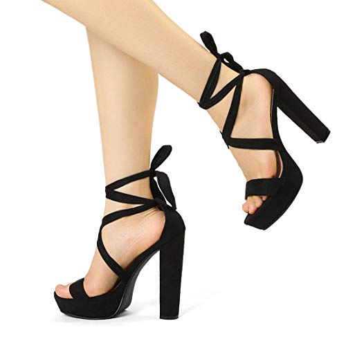 Allegra K Women’s Lace Up Platform Block Heel Sandals