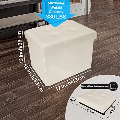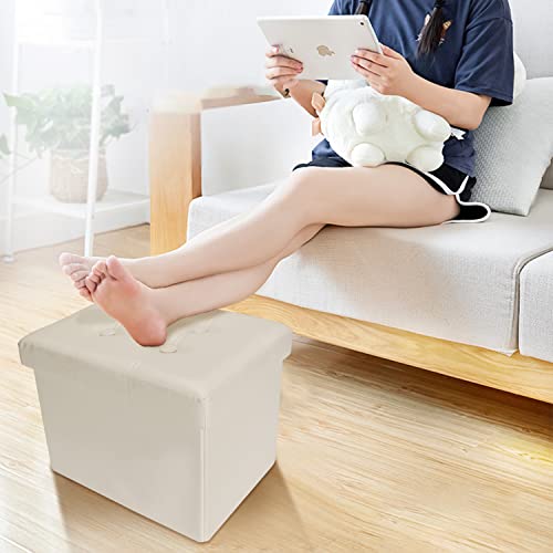AmasSmile® Storage Ottoman Folding Foot Rest Stool, 17 inch Leather Footstool Bench, Short Ottoman Stool, Storage Foot Rest Store, Books, Records Support 330 lbs,Beige