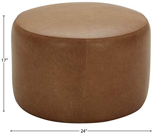 Amazon Brand – Rivet Tompkins Contemporary Foam-Padded Leather Ottoman, 24″W, Cognac