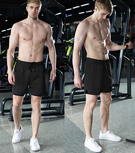 Aolesy Men’s 2 in 1 Running Shorts, Workout Gym Athletic Shorts for Men Quick Dry Lightweight Training Shorts with Pockets
