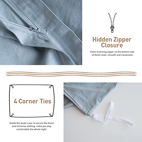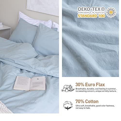 BISELINA French Linen Duvet Cover Set 3pcs with Hidden Zipper Closure Natural Flax Cotton Blend Solid Color Soft Breathable Luxury Farmhouse Bedding -King Size, Dusty Blue