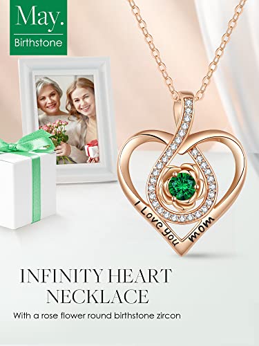 🌹I LOVE YOU MOM: This infinity heart necklace for women is engraved with the words “I love you mom”, is a testament to your love for your mother. A heart-shaped gemstone is wrapped by a infinity which signify “I will love you until infinity runs out”.