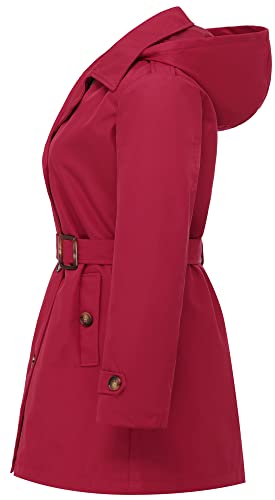 Chrisuno Women’s Plus Size Double Breasted Trench Coats Mid-Length Belted Overcoat Dress Jacket with Detachable Hood