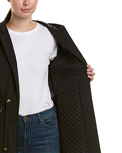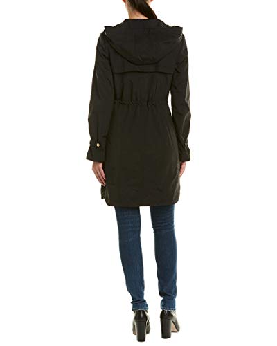 34″ Hooded anorak rain jacket with quilted liner and scoop hem