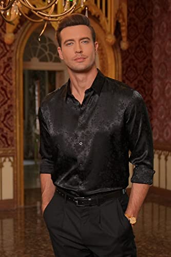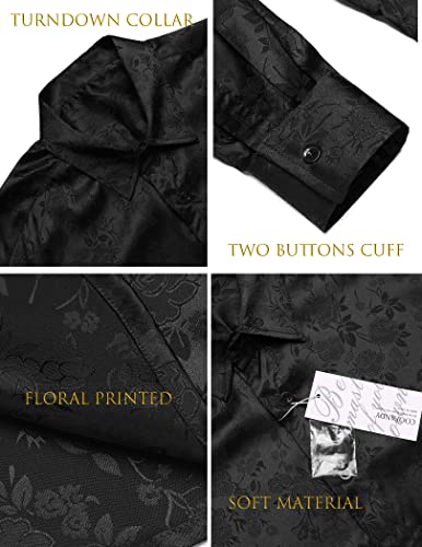 COOFANDY Mens Floral Rose Printed Long Sleeve Dress Shirts Prom Wedding Party Button Down Shirts