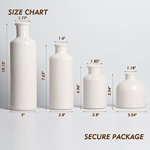 CUCUMI 4 White Ceramic Vase for Decor, Small Flower Decorative Vases for Home Decor Accents, Modern Farmhouse Bud Vase for Centerpieces, Living Room, Shelf, Mantel