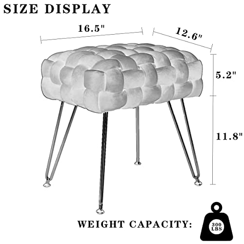 CUYOCA Ottoman Velvet Upholstered Foot Rest Vanity Stool with Metal Legs, Modern Contemporary Accent Stools, Makeup Footstool, Blush