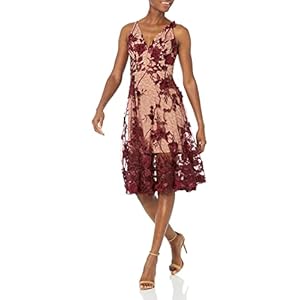 Dress the Population Women’s Audrey Plunging Neckline Fit and Flare Midi Dress