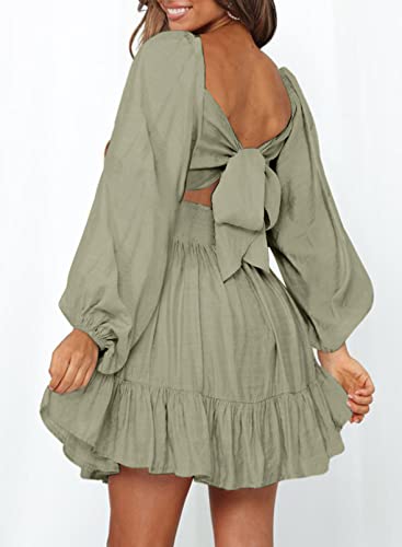 EVALESS Long Lantern Sleeve Dresses for Women 2023 Fashion Tie Back Square Neck Summer Elegant Mini Dress