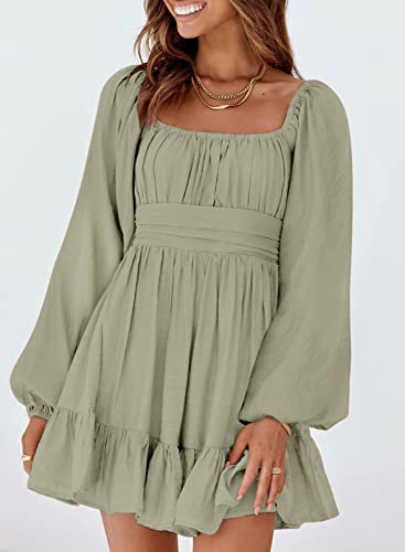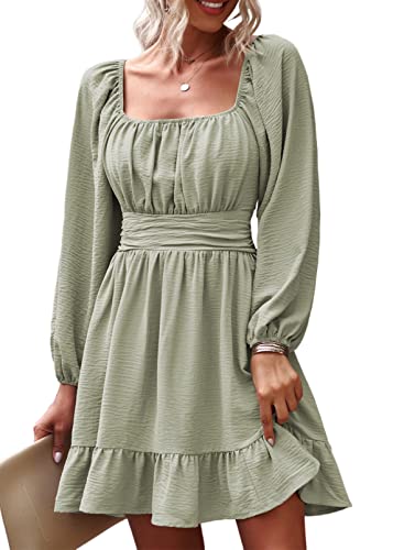 Fetures:Long lantern Sleeve dresses for women 2023, elegant square neck formal wedding guest dresses make you decent, sexy dress do one-shoulder wear as a summer dresses, cute ruffled mini dress makes you energized and looks younger.