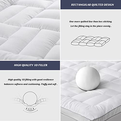 HIGH QUALITY FILLER & BREATHABLE: Quality extra thick mattress topper full is layered with air layer 3D&7D snow down alternative fiberfill to create a breathable and soft sleeping surface that adapts to your body temperature. You’ll feel yourself “gently melting and folding into” it when falling asleep, comfortable all night!