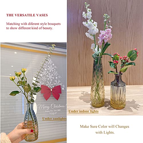 Baroque Unfashionable Style: Blue vintage mini glass vases adopt gradient accent tone: from navy blue on top to amber yellow bottom. Color transparent vases reflect lights well and make home full of smooth light of nature. Notice: The color may vary under different lights and screens.