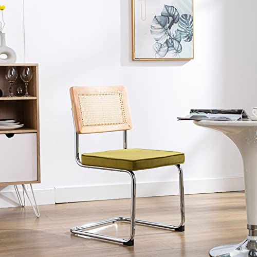 iMenting Velvet Dining Chairs, Mid Century Modern Chairs with Rattan Backrest Upholstered Comfy Side Chair for Home…