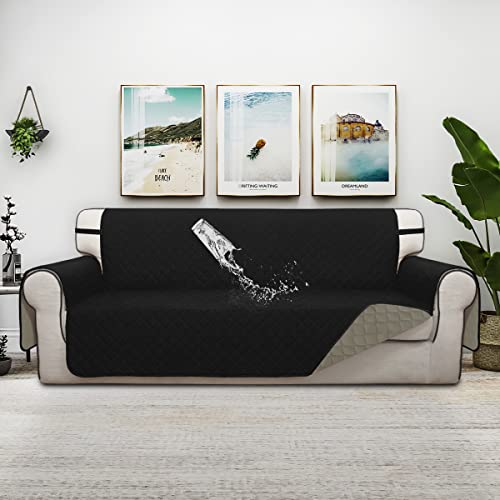 ISSUNTEX Double Protection 100% Waterproof Sofa Covers for Living Room, Couch Covers for 3 Cushion Couch Sofa, Reversible Furniture Protector Sofa Cover for Dogs, Pets, Kids (Sofa, Black/Beige)