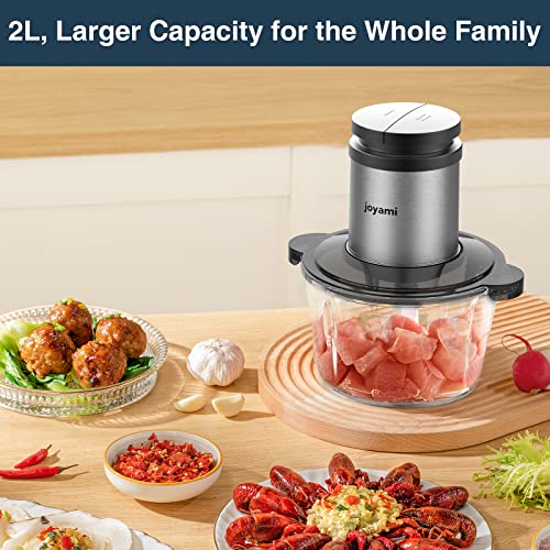 JOYAMI Electric Food Processor with 2 Bowls, Meat & Vegetable Grinder, 8-Cup Stainless Steel Bowl and Glass Bowl, 4 Sharp Blades, 2 Speed, 400W