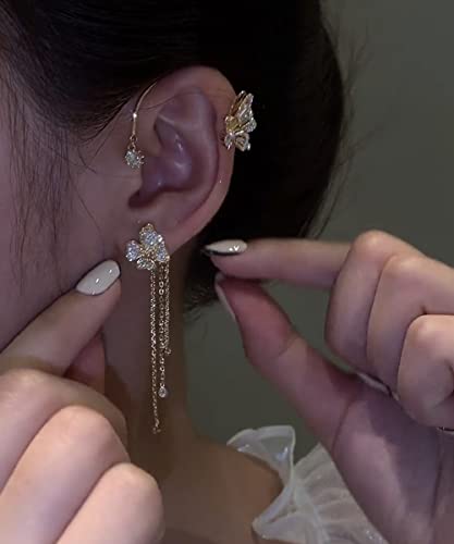 Kenjudess Vintage Crystal Butterfly Flower Ear Cuffs 2pcs Non-Pierced Sparkling Iced Out Rhinestone Butterfly Cartilage…