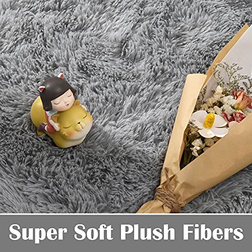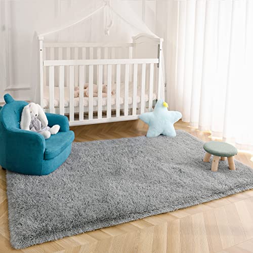Kimicole Grey Area Rug for Bedroom Living Room Carpet Home Decor, Upgraded 4×5.9 Cute Fluffy Rug for Apartment Dorm Room…