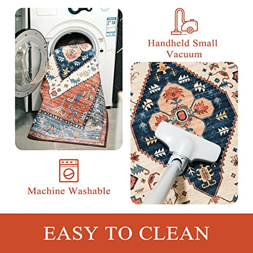 【Persian Rug Design】:Special Medallion pattern with classic rust, vintage pattern in the border for embellishment. Pretty throw red rugs can perfectly match entryway, bathroom, kitchen sink, bedroom, front door, dorm, laundry room, living room, mudroom, home place of work, and more.