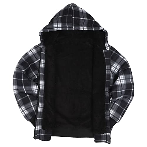 LeeHanTon Mens Flannel Jackets Sherpa Lined Fleece Zip Up Winter Warm Workout Plaid Sweatshirt with Hood