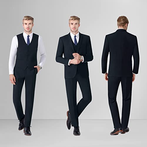 LUPURTY Men’s Suits Slim Fit, 3 Piece Suits for Men, 2 Buttons Solid Jacket Vest Pants with Tie, Men Suits Tuxedo Set