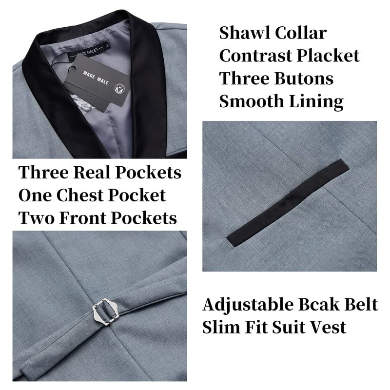 【Fabric】This MAGE MALE vest suit is well made with prime quality durable material,soft and lightweight. no fading, no distortion, anti-wrinkle and not easy to pilling.