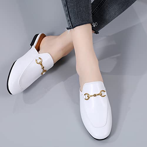 Minorsu Buckle Mules for Women Flats Round Toe Mule Backless Slides Slip On Loafer Shoes