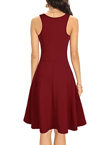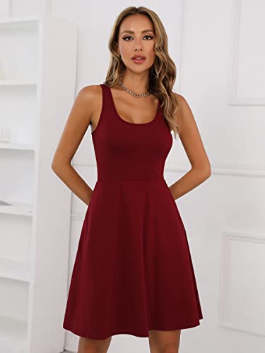 Missufe Women’s Sleeveless Racerback Flared Casual Plain Tank Dress