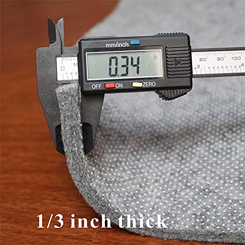 【THICKER AND DENSER 】 The pad contains 46oz of felt. All the thickness reaches 1/3 inch. It is thicker than most rug pads in the marketplace for those looking to maximize cushioning and comfortability. High density thickened heat-pressed felt adds soundproofing and insulation. The surface is moisture-proof and will not deform after a very long time.