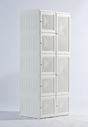 Portable Wardrobe Closets – 14″x20″ Depth (10 Cubes) Cube Storage, Bedroom Armoire, Storage Organizer, Clothes Dresser, Closet Storage Organizer, White