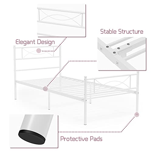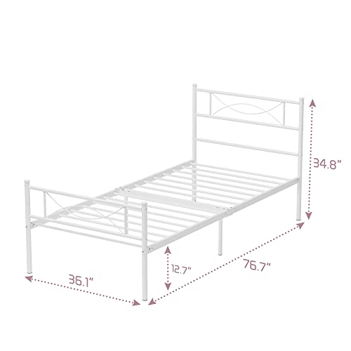 SimLife Metal Platform Bed Metal Big Girl Kids Adults Princess Bed Frame Mattress Foundation White