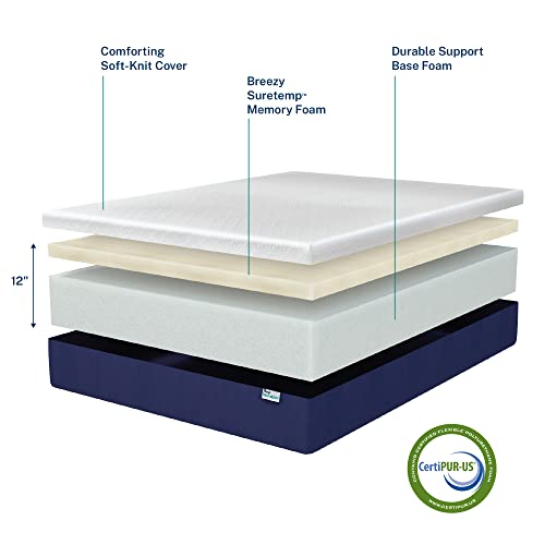 Queen Size Soft Memory Foam Mattress: This 12 inch memory foam mattress features ventilated Suretemp memory foam, a soft knit cover, and a durable base layer for pressure relieving medium firm Strengthen in any sleep position