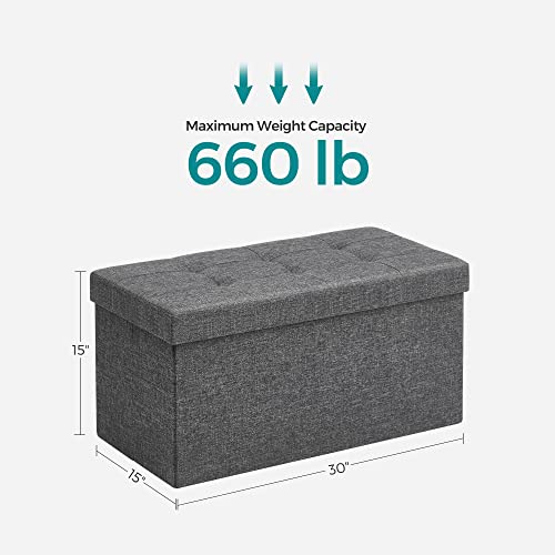 SONGMICS 30 Inches Folding Storage Ottoman Bench, Storage Chest, Foot Rest Stool, Dark Gray ULSF47K