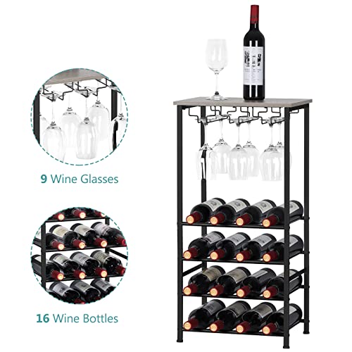Vrisa Wine Rack Freestanding Floor 16 Bottles Wine Rack with 9 Wine Glass Holder Wine Bottle Holder Stand Wine Racks for…