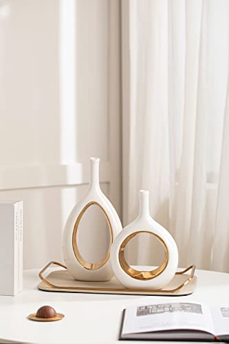White Gold Vase- Modern Vase, Vases for Decor, Ceramic Vase for Shelf Decor Home, Office, Living Room, Bookshelf, Centerpieces, Decorative Vase, Table Decoration, Set of 2