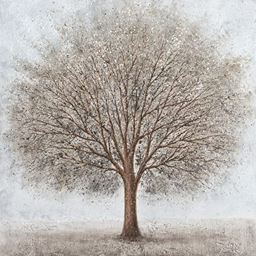 Abstract Tree of Life Painting – Tree Canvas Wall Art for Home – Light Brow Tree Picture Poster Home Mural Decor for Living Room Wrapped In a position to Hang 14 x 14 Inch