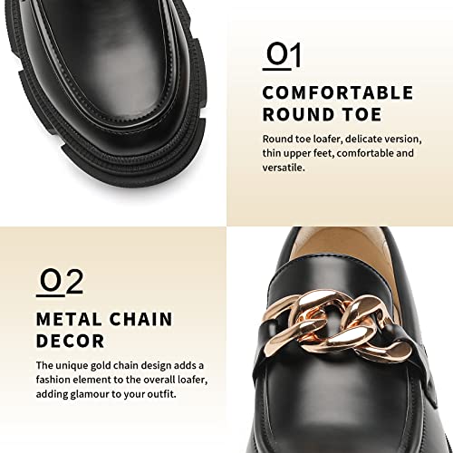 YETIER Womens Chunky Loafers Platform Lace up Loafer Leather Slip-on Round Toe Comfort Loafer Shoes Penny Casual Fashion Work Shoes